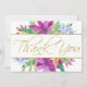 Lindas flores roxas e cor-de-água cor-de-rosa arranjo floral com tiras de folhas falsas de ouro e mensagem "Obrigado". Mande um obrigado elegante que não será esquecido em breve!