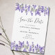 Placa de casamento Floral d'água salve o cartão de data. Bonito botânica floral de lavanda para primavera e verão. Fácil de mudar o texto.