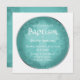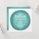 Turquesa quadrada elegante e convites brancos num design redondo com uma marca de água transversal e floral em papel de linho.