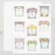 A sheet of enchanting cutout images featuring vintage‑style windows draped in lush floral accents and delicate valances, each one bathed in a soft, ethereal glow. Every window feels like a tiny storybook vignette—square frames, weathered panes, and gentle cascades of blooming flowers, and trailing greenery that spill over the edges with graceful charm. The floral valances add a touch of old‑world elegance, their patterns subtly illuminated as if touched by morning light.