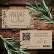 Floral Wreath | Cartão de visita artesanal — A arte da linha apresenta os lados esquerdo e direito da frente do cartão, juntamente com o nome da sua empresa e o endereço do seu site. No verso, há um código QR personalizável para o endereço da Web que você escolher, sua linha de etiqueta no canto superior direito com uma linha e seu nome abaixo. A parte inferior esquerda apresenta campos de modelo opcionais para o seu escritório e números de telefone celular, bem como o seu endereço de correio eletrônico. A parte inferior direita apresenta uma variedade de ícones de mídia social — você pode usá-los para esse fim, trocá-los por ícones da sua escolha ou excluí-los completamente. Todas as cores, texto e fundo são editáveis.