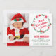 Cartão de nascimento de fotografia de Natal com uma bela coroa floral vermelha e verde. Adicione todos os seus detalhes sobre este modelo fácil de usar e enfeite este cartão com a foto do seu bebê para torná-lo um anúncio de tipo único. Sacudir a placa para revelar um padrão elegante de flocos de neve vermelho e branco na parte traseira da placa.
