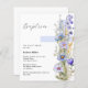 Um fundo branco, com uma grande cruz azul clara decorada com flores azuis. Personalize e adicione o nome e os detalhes. 1 folha = 1 convite impresso de borda a borda.