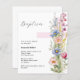 Um fundo branco, com uma grande cruz rosa decorada com flores rosa e azuis. Personalize e adicione o nome e os detalhes. 1 folha = 1 convite impresso de borda a borda.