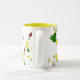 Flores amarelas e caneca pequena dos joaninhas
