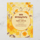 Defina o tom para uma celebração sofisticada com este convite de festa de aniversário lindamente desenhado da coleção Retro Sunshine Yellow Flowers. Com flores amarelas manteiga ousadas e acentos de laranja tangerina e mousse de mocha sobre um fundo amarelo pastel, este convite combina elegância com charme alegre.