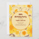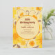 Defina o tom para uma celebração sofisticada com este convite de festa de aniversário lindamente desenhado da coleção Retro Sunshine Yellow Flowers. Com flores amarelas manteiga ousadas e acentos de laranja tangerina e mousse de mocha sobre um fundo amarelo pastel, este convite combina elegância com charme alegre.