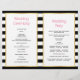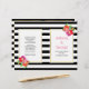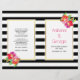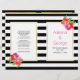 Flores tropicais cor-de-rosa e púrpura e listras brancas e pretas, cerimônia de casamento e programa de festas. Lindas flores tropicais adoram esta elegante e moderna design de casamento floral. Seu texto é colocado em quadros brancos com contornos dourados. Escolha o papel de valor à medida que ele se dobra bem e dobre-o à metade manualmente.