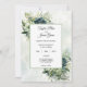 Flores de cor d'água de tons azuis e verdes para gradientes de texto maciço centrados no Convite para Casamento
