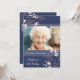 Personalizados 85º convites de fotos de Festa de aniversário em azul marinho escuro elegante e moderno, cor de pêssego coral rosa e branco com delicado padrão floral japonês. Personalize esses convites com sua própria foto e texto para criar um convite de celebração de aniversário verdadeiramente único.