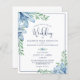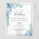 Convites florais elegantes impressos em papel leve impresso em papel leve, ideal para orçamentos conservadores e/ou entrega manual a hóspedes com cor d'água leve, cor d'água poeirenta azul e azul marinho e verde. Entre em contato com o designer por meio do Zazzle Chat ou makeitaboutyoustore@gmail.com se você quiser que este design seja modificado, em outro produto ou em itens de coordenação.