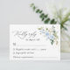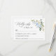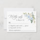 Preencha a sua suíte de papelaria de casamento com este cartão RSVP de na moda. Design apresenta flores azuis e brancas de aquarela, verde e confete dourado sobre fundo branco.
