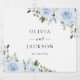 Adicione um toque pessoal à sua celebração de casamento com estes itens de na moda e festa memoráveis! Design apresenta flores azuis poeirentas de cor d'água e verde sobre fundo branco.