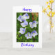 Flores azuis bonitos, pequenas com texto azul: "Feliz aniversario"