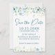Cartões salve a data de flores verdes e azuis. Personalize nomes, datas e informações.