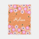 Bonito cobertor de velo para garotas. cobertor laranja com flores em branco e rosa. Abelhas voando. Personalize com o nome do seu filho.
