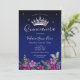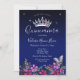Lindas estrelas brilhantes na fronteira superior. Design elegante e de tendência com tipografia de rico. Todo o texto é ajustável e fácil de mudar para as necessidades do seu próprio partido. Excelente elegante Quinceañera design. Disponível em cores diferentes. Bela princesa tiara com arranjo floral. Borboleta azul com borboleta floral inferior. Diferentes cores de fundo disponíveis.