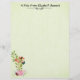 Um buquê brilhante de flores e folhas, com três borboletas, sobre um fundo verde de tecido, faz uma bela folha de Papel de carta. Perfeito para toda a tua correspondência!