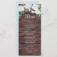 Este clássico cartão de janto de casamento rústico de flores brancas é perfeito para um casamento outono. O elegante design floral apresenta marfim macio e rosas brancas, peonias e crisântemo com toques de flores azuis e aquarelas periwinkle e folhagem verde sobre um fundo falsa de madeira marrom. Este menu pode ser usado para recepção de casamento, janto de ensaio ou qualquer evento.