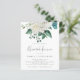 POR FAVOR, NOTE Há duas opções de papel para escolher para este tamanho (4,5 x 5,6”) na gama Budget. Para este produto, eu recomendaria o semi-brilho, que é um cartão de 110 gsm, semelhante em espessura a um cartão-postal. A opção Satin é um papel muito mais fino, 80 gsm. O padrão é definido como semi-brilho. Há UM por folha. Convite para Jantar de Rehearsal de Flores Brancas Budget. Um conjunto informal de tipografia em preto para o título principal Evening Party que complementa o resto do texto que você pode facilmente personalizar.
