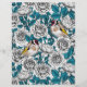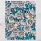 Padrão vetorial desenhado à mão com rosa e pássaros dourados. Todos os elementos do padrão são desenhados primeiro com tinta no papel e depois redesenhados e coloridos no Illustrator.