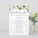 O que a preferencialmente faria? | Adicione este cartão de jogo de chá de panela divertido e divertido ao seu evento. Este cartão personalizável de jogos "Ela Preferencialmente" apresenta ilustrações em aquarela de flores brancas e verde. Personalize adicionando seus próprios detalhes. Este cartão floral branco de adivinhação é perfeito para chás de panela e chás de casamento de inverno e primavera.