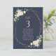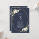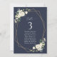 Adicione um toque pessoal à sua celebração de casamento com estes itens de na moda e festa memoráveis! Design apresenta flores brancas de aquarela, verde e estrutura dourada sobre fundo azul marinho.