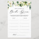 Adivinha a idade da noiva e do noivo em cada fotografia. Quem tem as respostas mais corretas ganha! | Adicione este cartão de jogo de chá de panela divertido e divertido ao seu evento. Este cartão personalizável de "Quantos Anos Tinha a Noiva e a Noite" apresenta ilustrações em aquarela de flores brancas e verde. Personalize adicionando seus próprios detalhes. Este cartão floral branco de adivinhação é perfeito para chás de panela e chás de casamento de inverno e primavera.
