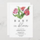Um buquê de flores vermelhas é pintado em aquarela. Uma bela coleção elegante para um chá de fraldas de verão.