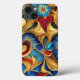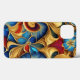 Uma mistura de flores coloridas multicoloridas e design repetitiva. Azul, ouro, vermelho e verde.