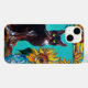 FLORES COM GATO PRETO EM TURQUOISMO AZUL