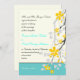 Magnolia flores de turquesa amarela convite floral personalizado para casamento, com um belo galho magnólia com flores amarelas, botões, pássaro e turquesa de cor sólida no fundo. Marfim, amarelo, turquesa, preto, cinza. Excelente para um casamento de primavera ou verão.