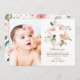 Flores cor-de-rosa e Barato branco com impressão personalizada para bebê Menina Batismo. Este design bonito tem uma cor-de-água pincelada rosas e folhas verdes com texto branco. O verso tem uma cruz branca com folhas de aquarela ou usa o espaço para adicionar texto e fotos adicionais. Clique em Personalizar para escolher qualquer cor de fundo e editar as fontes e cores do texto.