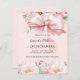 Um elegante fundo cor-de-rosa esbranquiçado, decorado com um grande arco rosa e flores cor-de-rosa. Personalize e adicione um nome e detalhes da parte. 1 folha = 1 convite impresso de borda a borda.