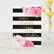 Cartão de aniversário para tia com flores cor-de-água rosa, listras pretas, texto dourado e verso pensativo.