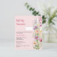 Flores cor-de-rosa cruzam menina Primeiro convite