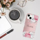 Um fundo cor-de-rosa pincelado com florais cor-de-rosa, folhagem prateada e poeira reluzente. Personalize e adicione seu nome. O nome é escrito com um moderno estilo escrito à mão.