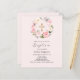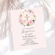 Um fundo cor-de-rosa suave e pincelado, decorado com flores cor-de-rosa e brancas, em uma coroa e uma cruz ouro. Personalize e adicione um nome e detalhes. 1 folha = 1 convite impresso de borda a borda.
