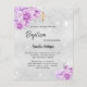 Um fundo falso, de aspecto prateado, com faíscas prateadas falsas e flores cor-de-rosa e violeta. Personalize e adicione um nome e os detalhes. 1 folha = 1 convite impresso de borda a borda.