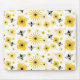 Um mousepad que caracteriza um teste padrão de abelhas, de flores, e de bolinhas do mel.
