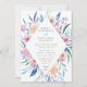 Blue Purple Watercolor Flowers Geométrico Wreath Wedding Invitation - a Watercolor Pinted Flowers detail com design de convite para casamento. Cor rosa, roxa e azul para um casamento de inverno ou primavera com lindas flores pintadas.
