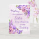 Cartão de aniversário para irmã com flores de aquarela roxas e verso atencioso.