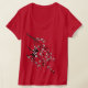 Gato preto bonito brincando entre os galhos florescentes de ameixa. Uma camisa bonita e elegante. Parece excelente em roxo e vermelho escuro.