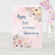 Feliz cartão de aniversário de casamento de 1rua com lindos padrões de flores cor-de-água rosa e verso sentimental.