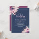 Combinação de cor botânica moderna entre marinho e rosa escuro/púrpura com flores a aquarelas em pinks, fuchsia, lavanda e verde com uma fina estrutura branca na frente. Cor-de-rosa escuro/roxo parte traseira do convite apresenta as iniciais do casal feliz no centro.