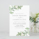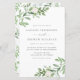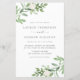 Convide familiares e amigos para o seu casamento com este convite de casamento verde. Apresenta ilustrações de aquarela de folhagem verde, flores brancas e um padrão botânico correspondente. Este convite floral branco é perfeito para primavera e casamentos no inverno. Personalize adicionando seus detalhes.