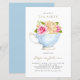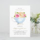 Junte-se a nós para uma festa de chá! Convide familiares e amigos para o seu evento com este convite de festas de chá personalizável. Apresenta a ilustração aquarela de uma equipe com um buquê rosa. Personalize adicionando seus detalhes. Este convite de festas floral é perfeito para eventos de primavera e jardim.