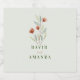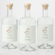 Esta garrafa de licor de casamento personalizável apresenta flores vermelhas aquáticas e folhas verdes de sábio num fundo verde pálido, com texto personalizado em vermelho enferrujado e verde.