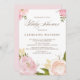 Convite de chá de fraldas personalizável com ilustrações de cor d'água desenhadas à mão de peões rosa. Itens semelhantes e itens correspondentes estão disponíveis na minha loja.