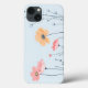 Flores de Arte de Linha Mínima no Fundo Azul Pastel